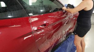 A premium advantage of Paint protection Film is its hydrophobic properties, which means that it creates a surface that repels water. This means that mud and grime will have a more difficult time bonding with the vehicle’s paint; and when the car is washed contaminants come off more easily.